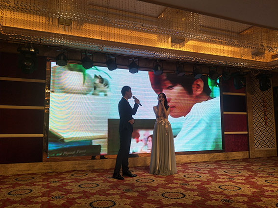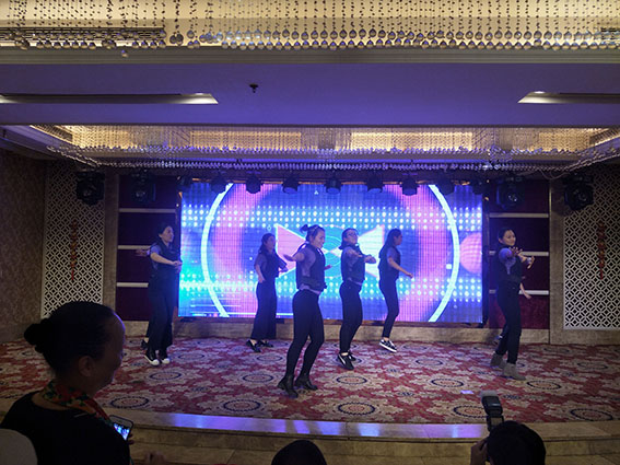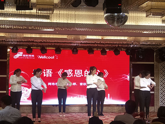 晚會的尾聲是重磅的壓軸節(jié)目,沃爾康全體員工齊聚在舞臺上,共同唱著愛的奉獻(xiàn)