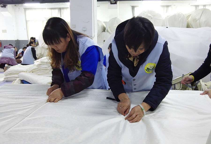 “暖冬暖心”愛心捐贈活動現(xiàn)場暖意融融,如火如茶的開展著,活動現(xiàn)場上,我司職工和協(xié)會志愿者有的包裝,有的整理,有的縫合床墊......,