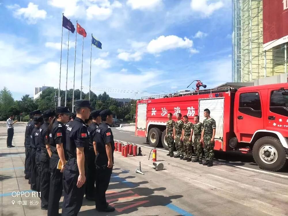 2018年6月27日下午,长沙金典建设工程有限公司与润怡集团携手在未来方舟三期项目举行消防知识培训应急预案演练。整个演练共分为现场模拟火灾疏散急救、模拟触电事故急救二个过程,历时3小时,涉及人员200余人,宁乡经开区规划建设局质安站的相关领导也莅临现场观摩指导。