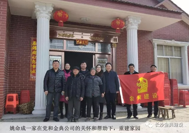 在党和金典公司的帮助下,彭干秋、姚命成两家重建家园。这次春节慰问,金典公司给两家分别送去了40寸的长虹电视机、美的洗衣机、电饭煲、电热水壶等价值3500元慰问物资。