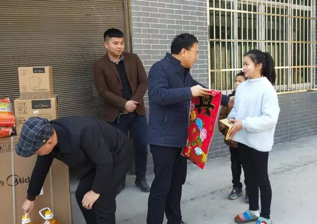 2018年2月7日,正值年关岁末,公司年底工作纷繁复杂,为了让贫困户度过一个喜庆、祥和、温暖的春节,董事长蔡跃武与副总姜冬良、文少柱带领公司一行又逐户走访,进行春节慰问。给每户帮联户送去了慰问金2000元,大米2袋,食用油2桶等慰问物资。