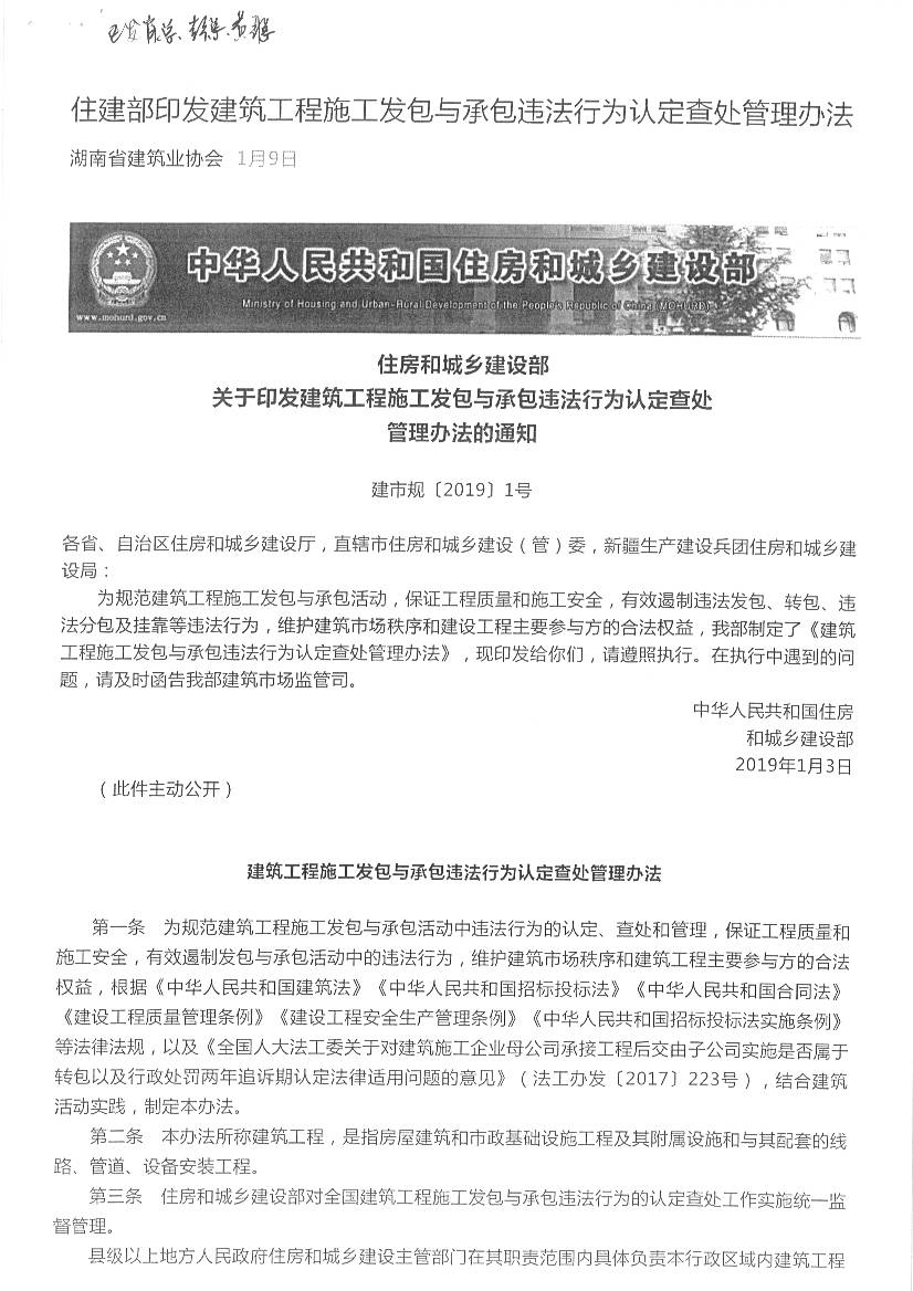 建筑工程施工发包与承包违法行为认定查处管理办法