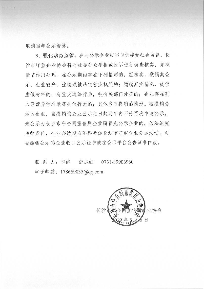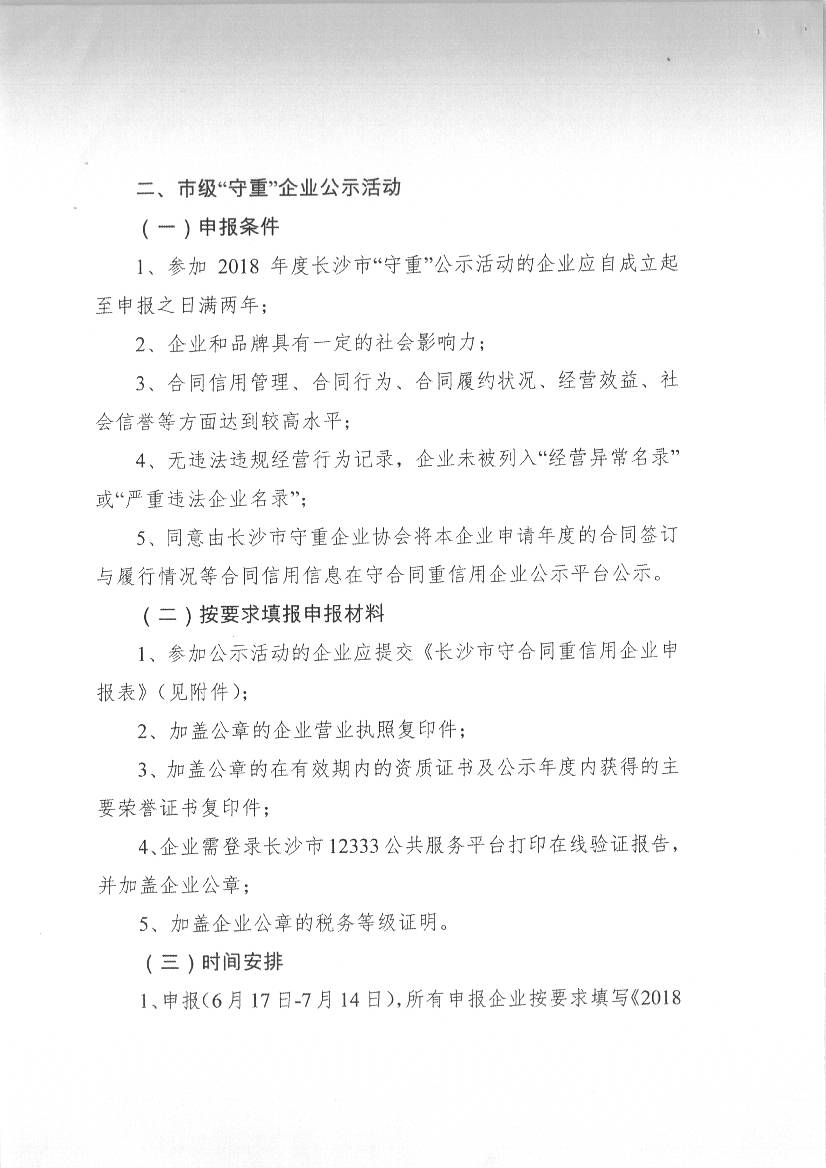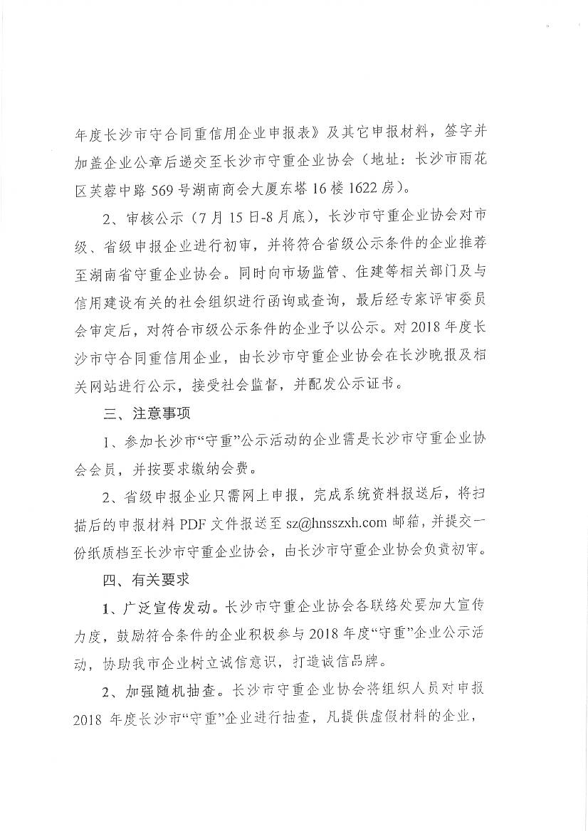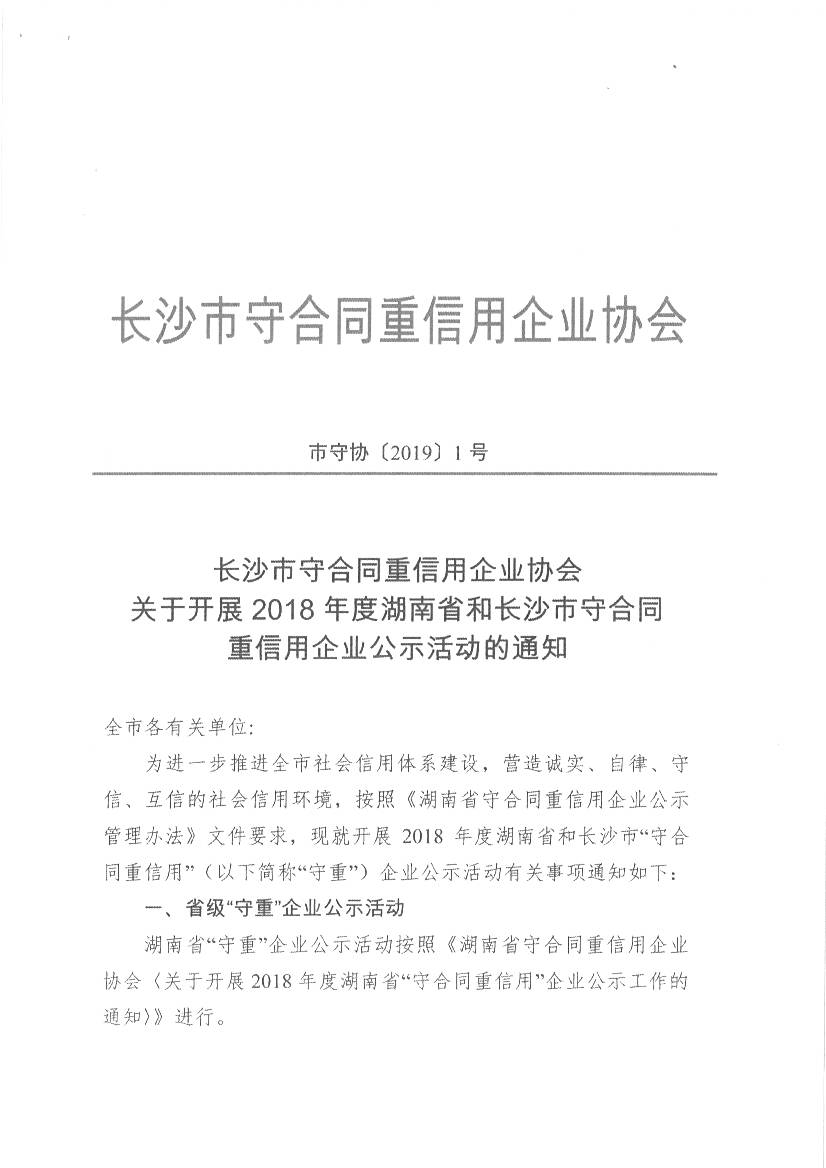 长沙市守合同重信用企业协会关于开展2018年度湖南省和长沙市守合同重信用企业公示活动的通知